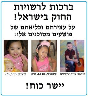 וזאת בזכותם של בחורינו הנפלאים, המצויינים והאמיצים מיחידת עוז, שבפעולה נועזת ומסוכנת מאין כמוה עצרו בחירוף נפש ילדה לעובדים זרים בת שלוש, מסתננת מסוכנת, בדרכה למסיבת יום ההולדת שלה.